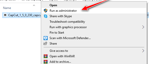 • Nhấn phải chuột vào file CapCut_3_9_0_1459_capcutpc_0_creatortool chọn Run as administrator