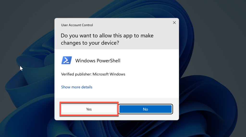 Bước 2: Xác nhận Yes