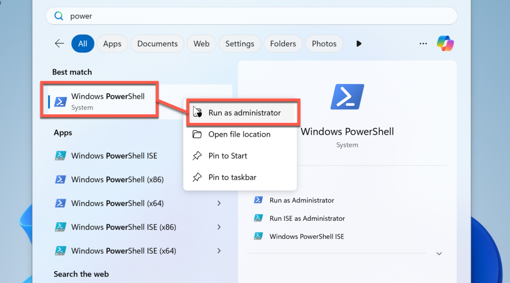 Bước 1: Mở PowerShell bằng quyền Administrator